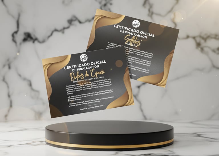 ✔️ CERTIFICACIÓN DE AUTORIDAD: Al terminar de leer y aplicar el programa, 🍰recibirás un 📜Certificado de Maestría en Repostería y Emprendimiento descargable.